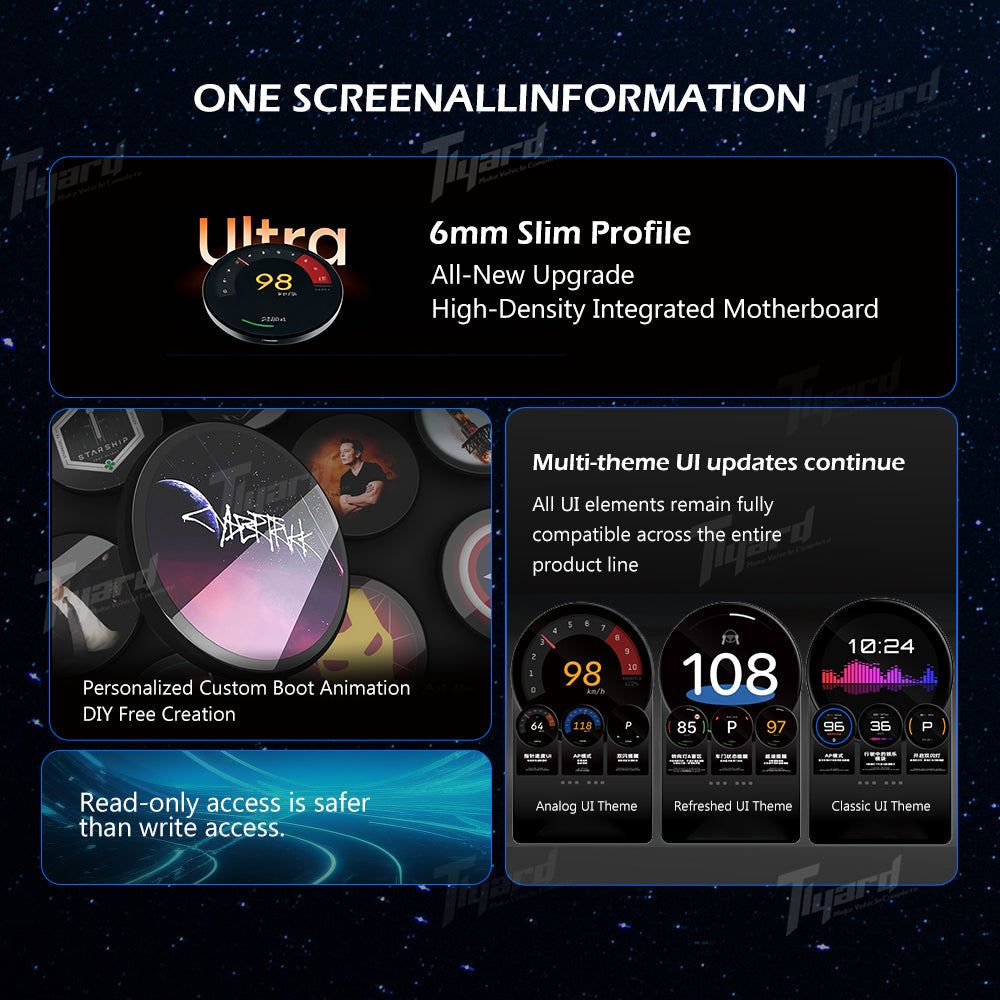 Elevate your driving experience with the Tlyard Ultra 1.75-inch OLED Car Speedometer, an advanced dashboard display that combines cutting-edge technology with sleek design and unparalleled customization options. This premium device offers a comprehensive solution for drivers seeking real-time vehicle data, enhanced safety features, and a personalized driving interface.