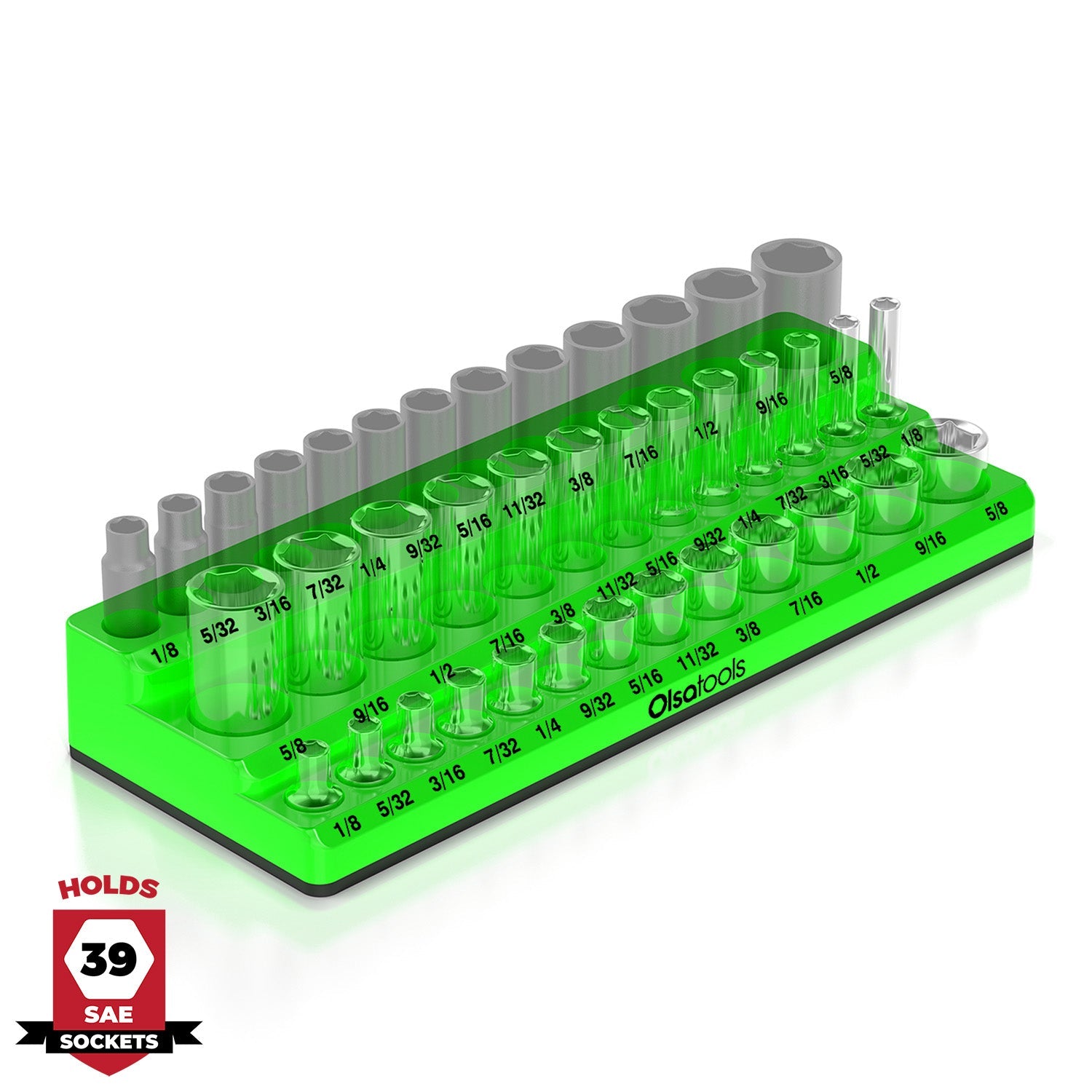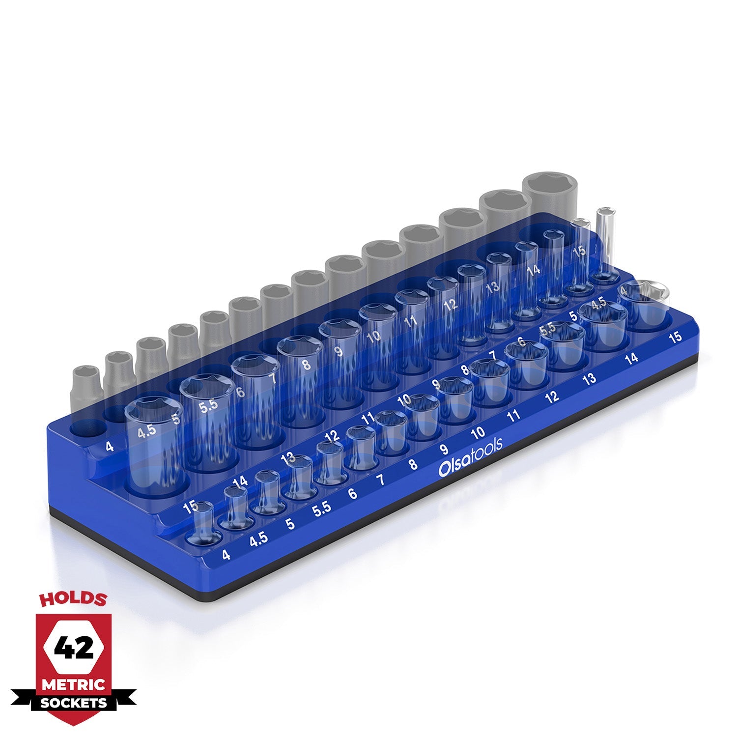 3-Row Magnetic Socket Holder Organizes 75+ 1/4",3/8",1/2" Drive Sockets
