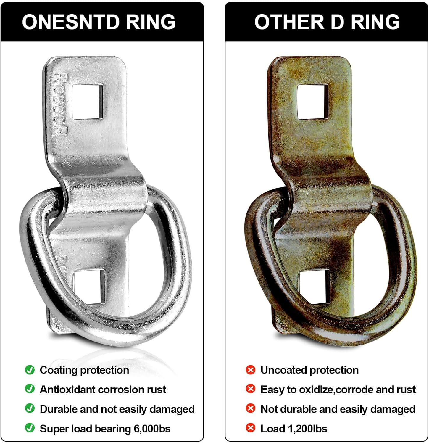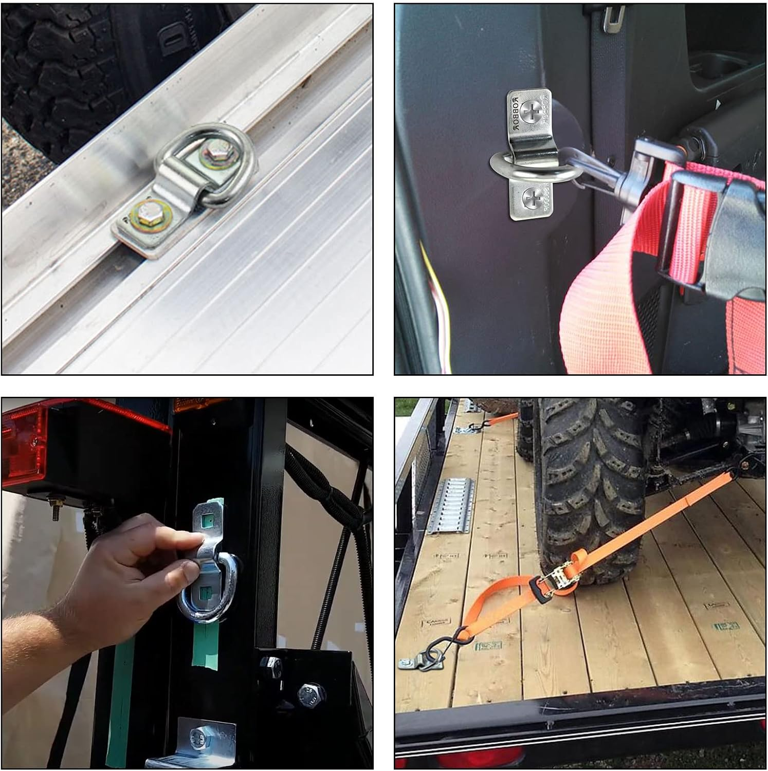 D-Ring Tie Down Anchors Heavy Duty Forged Steel, 6,000 lbs Capacity, Surface-Mount for Trailers, Motorcycles, and ATVs 4-Pack