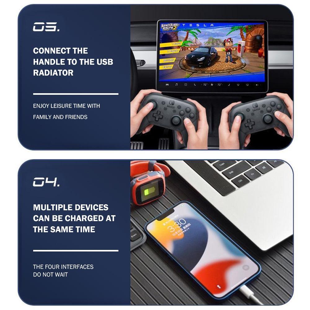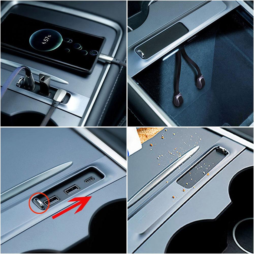 Does your center console need some extra ports? This USB HUB is the best choice. This USB hub is perfect for Model 3/Y. Super fast charging also lets you plug in multiple devices at the same time. Must-have Tesla upgrade accessories!