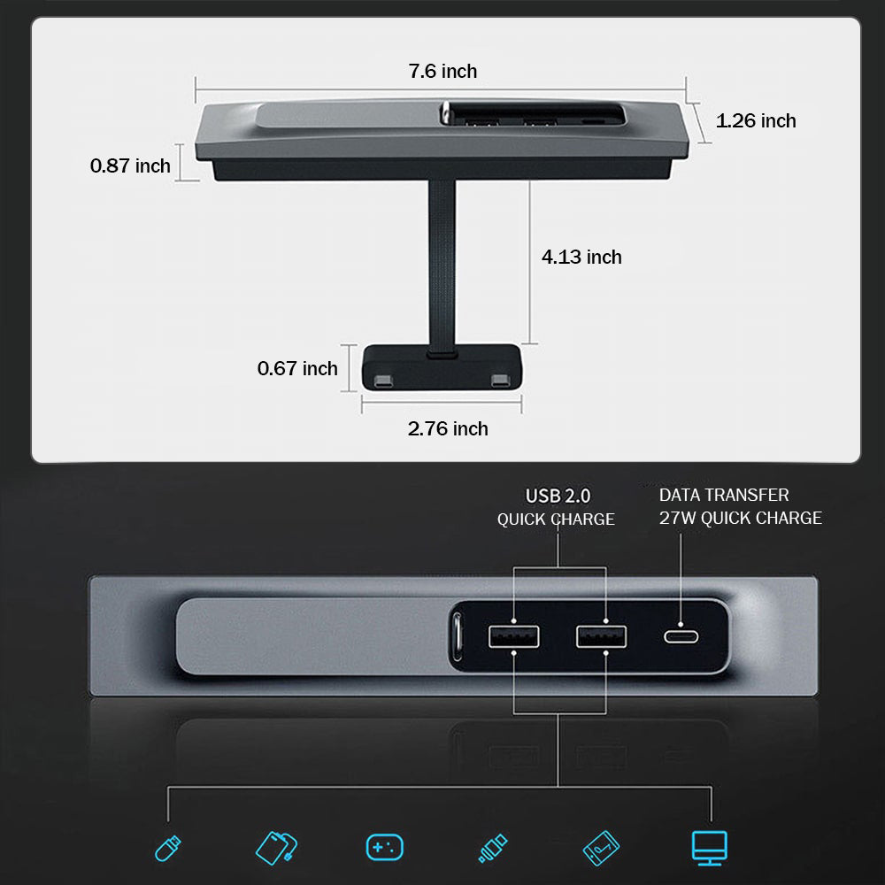 Dust-proof Model 3/Y 27W Phone Fast Charger USB Hub Docking Station