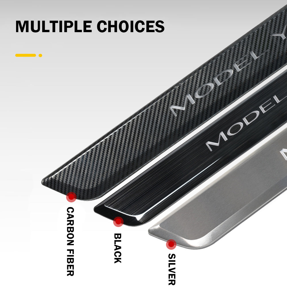 Tlyard door sill protector is made of Tesla original materials and is precisely molded. The Door Sill Scuff Plate prevents your door panels from abrading and scratching the original car paint. High-temperature resistance, no hardening, and no cracking protect the original paint.