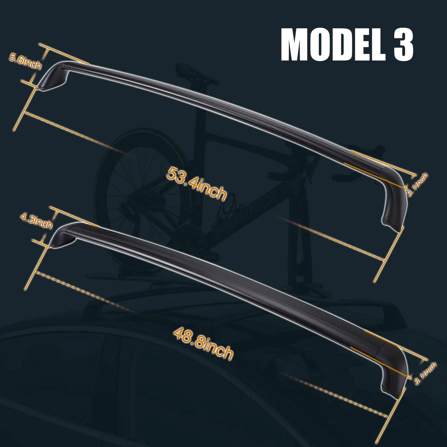 Model 3/Y/Highland 3 Lockable Roof Rack Aluminum Cargo Cross Bars (Set of 2)
