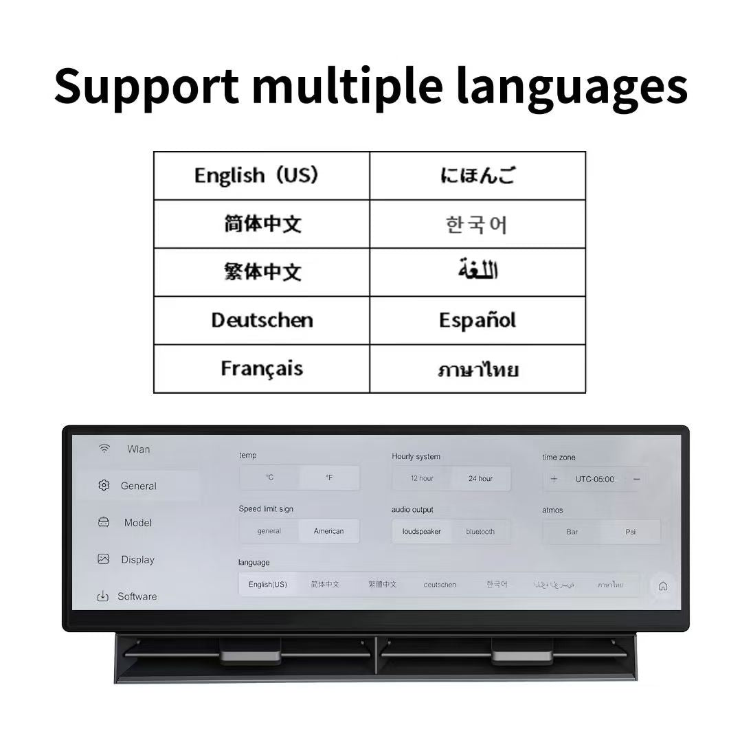 - Real-Time Driving Data – Shows speed, gear, battery level, turn signals, and more.