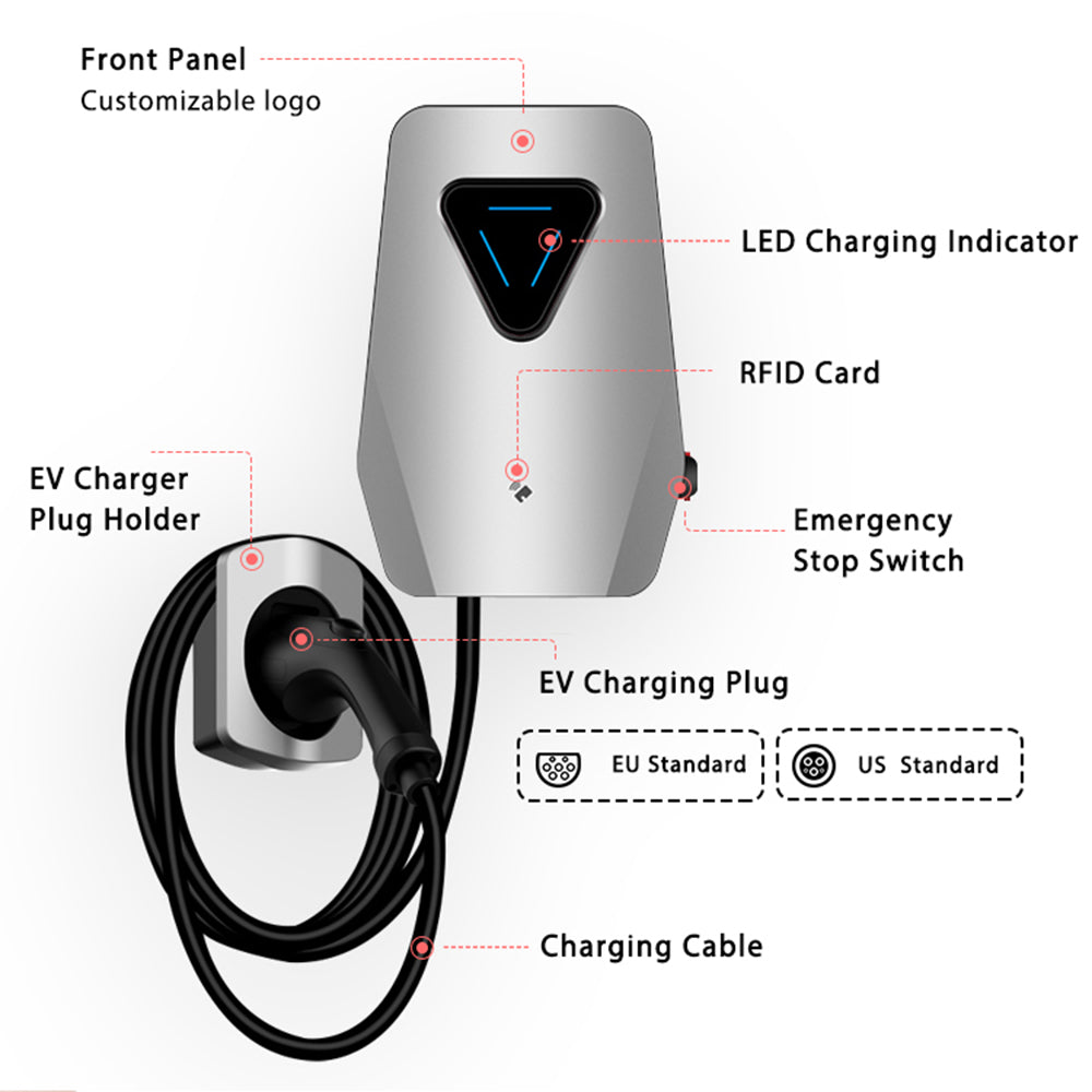 The TLYARD 7kW Wall-Mounted EV Charger delivers fast, safe, and reliable charging for all electric vehicles. Designed for both home and commercial use, it features robust construction with weatherproof (IP54) housing and advanced safety protections. Available in sleek black or silver, this charger supports EU, US, and Tesla connectors for universal compatibility. Its 7.62m heavy-duty cable and plug-and-play operation ensure convenient charging anytime, anywhere.