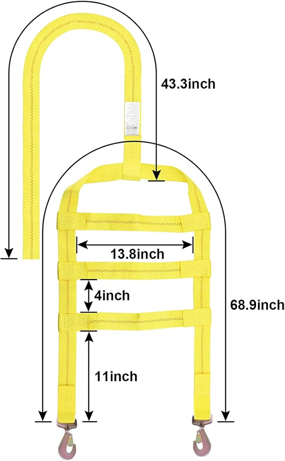 Tow Dolly Basket Strap with Twisted Snap Hooks - 2'' Webbing, 12,000 lbs Strength, Fits 14-19'' Tires